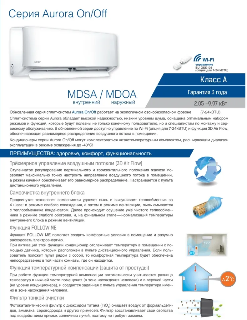 Сплит-система MDV MDSA-36HRN1 серия Aurora On/Off